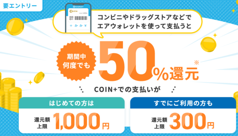 - 特典はエアウォレットアプリ内のCOIN+残高またはPontaポイントとして反映されます。