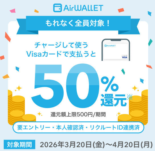 エアウォレットアプリからバーチャルカード(VISAカード)を発行&チャージのうえ支払 - 【対象期間】